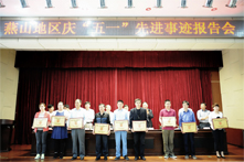 为庆祝“五一”国际劳动节,4月29日,燕山地区举办庆“五一”先进事迹报告会,我公司被授予六项荣誉:“经济技术创新先进集体”(技术部)、“工会经费代收代缴先进集体”(财务部)、“集体合同和工资集体协商先进集体”(公司工会)、“经济技术创新先进工作者”(薄锦育)、“工会经费代收代缴先进工作者”(朱燕)、“集体合同和工资集体协商先进工作者”(章瑜)。公司工会主席刘建华出席会议并代表我公司获奖的先进个人和集体上台领奖。
